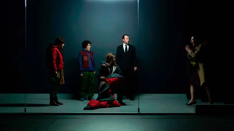 Il fait nuit. Il fait froid. C’est l’hiver. Un grand frère et sa petite soeur déambulent dans un centre commercial pendant que leur mère termine les courses. À travers une vitre, ils aperçoivent là, quelqu’un allongé dehors, emmailloté dans un sac de couchage. Qui est cette personne ? Pourquoi est-elle là ?